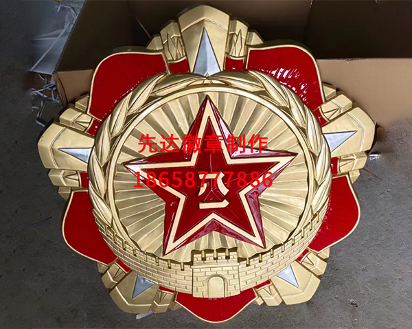 工艺标准 | 1. 基础工艺:高精度冲压(精度0.02mm)、CNC雕刻(还原五角星边角、“八一”字体细节,浮雕高度差0.3-0.5mm);2. 表面工艺:环保电镀、高温珐琅填充(温度≥800℃);3. 成型工艺:大型款采用分段铸造+无缝拼接,保障结构稳固,符合安装承重需求 |