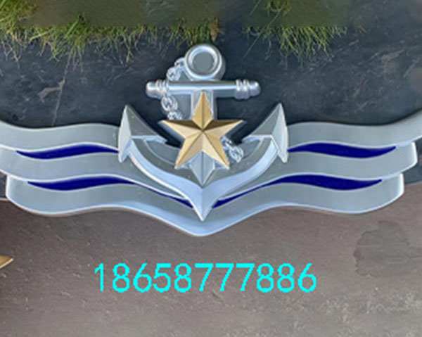 色彩规范 | 1. 主色标准:藏蓝色(象征海洋)、金黄色(“八一”军徽及边框)、银灰色(铁锚、锚链);2. 色差要求:同批产品无色差,漆膜附着力符合行业规范,户外使用需满足500H盐雾测试无褪色 |